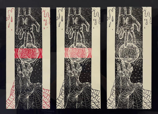 "Reach For Me" Part Two, Linoleum Relief Print, 6.5 by 14.75 inches, 2024